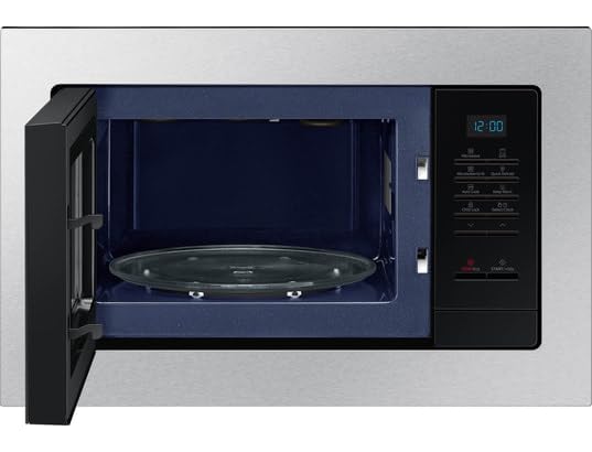 Il Samsung MG23A7013CT presenta un design moderno e funzionale, specificamente progettato per l’installazione da incasso in nicchie standard da 38cm. La finitura in acciaio inossidabile spazzolato conferisce un aspetto elegante e professionale, perfettamente integrato nelle cucine contemporanee.
